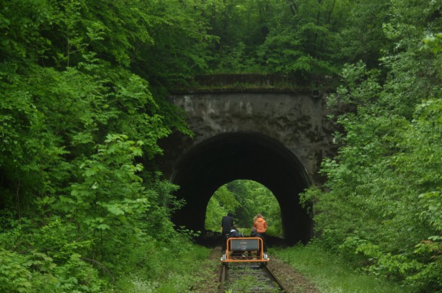 - Drezyny rowerowe to lekka – 4 osobowa konstrukcja napędzana przez 2 „kolejowych rowerzystów”. W początkowej fazie będą jechać obok siebie i formułować grupę przypominają cą „pociąg”. Opracowano bezpieczny sposób przekraczania skrzyżowań z drogami w takim „konwoju”, który nota bene jest już wypróbowany w krajach Europy Zachodniej. Bieszczady mają bogatą historię związaną z koleją. Po raz pierwszy ciuchcia zaczęła ciągnąć wagonykrętymi dolinami rzek już w 1874 roku. Powstały przy tej okazji dwa tunele kolejowe, z czego jeden – pod Przełęczą Łupkowską – jest do dziś największym w Polsce